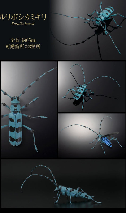 Black-spotted Blue Longicorn Insect PVC Action Figure model with joints