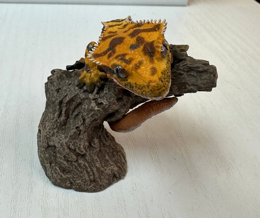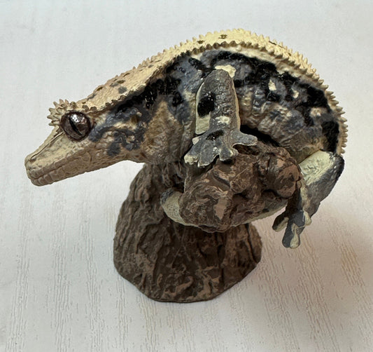 Crested gecko Lizard Reptile figurine figure model ring with stand B