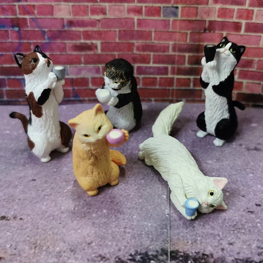 Tomy Takara Drinking Cat Kitten PVC MINI FIGURE Figurine model set 5 pcs