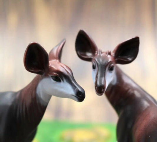 Japan ZOORASIA Zoo Exclusive Okapi pair mini figure figurine model with base
