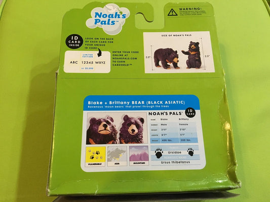 NOAH'S PALS Blake+Brittany BEAR (BLACK ASIATIC) Animal PVC figurine figure Model pair in box