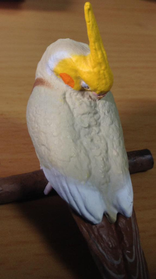 Retired Japan SHINEG Sleeping Brown Cockatoo Parrot Bird PVC mini figure figurine Model