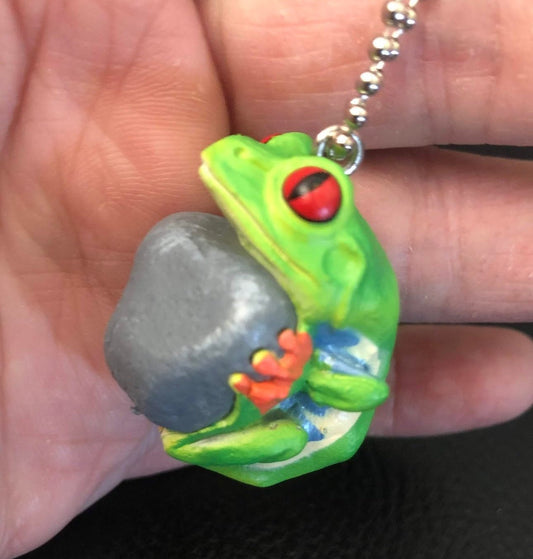 Japan Red Eyed Tree Frog on Rock Resin Mini Figure Figurine Model keychain