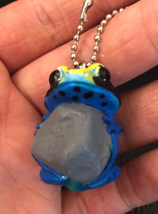 Japan Cobalt Blue poison dart frog on Rock Resin Mini Figure Figurine Model keychain