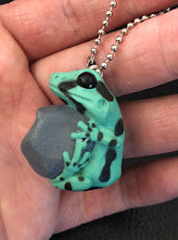 Japan Green and black poison dart frog on Rock Resin Mini Figure Figurine Model keychain